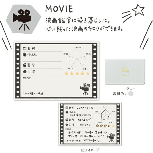 暮らしのキロクの映画メモMOVIEはグレーの表紙です。